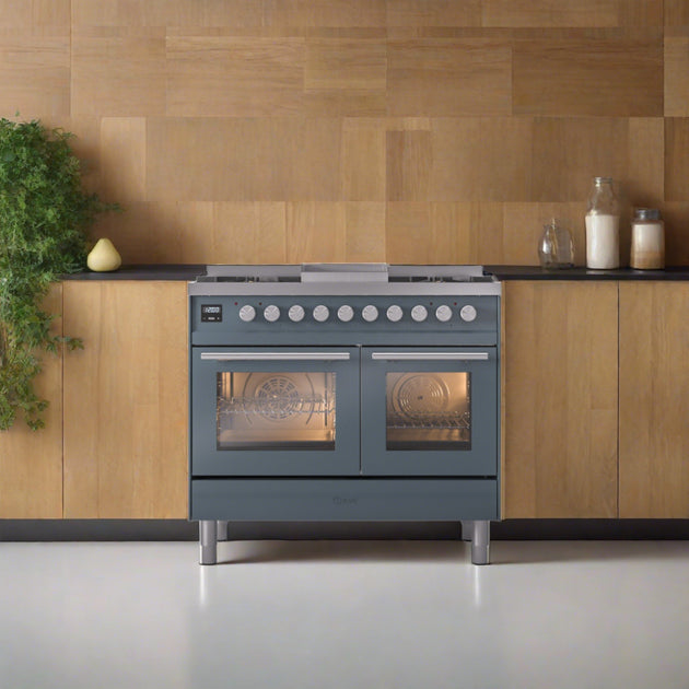 ILVE Professional Plus II 40" Dual Fuel Range with 6 Sealed Burners + Griddle Solid Door - UPD40FQMP