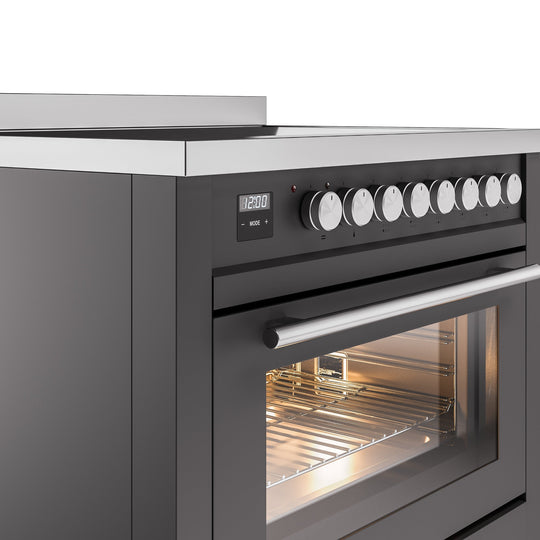 ILVE Professional Plus II 40" Electric Range with 6 Induction Elements Solid Door with Stainless Steel knobs UPDI406QMP
