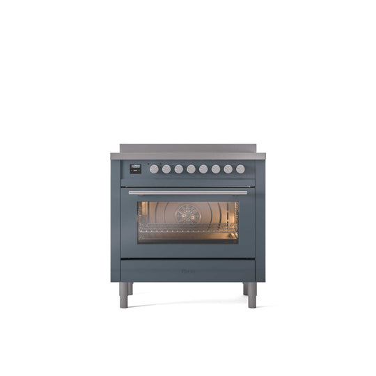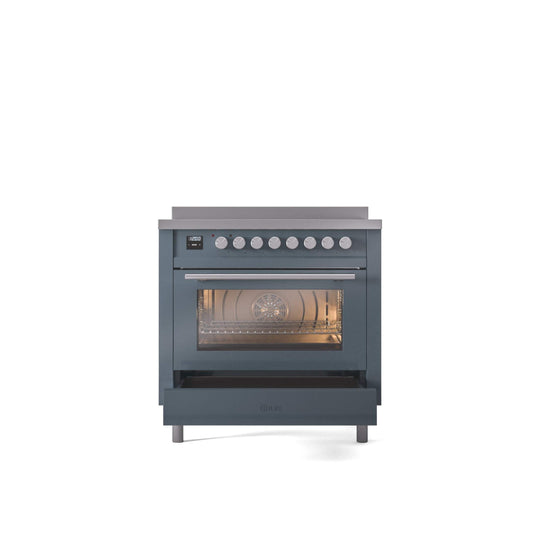 ILVE Professional Plus II 36" Electric Range with 6 Induction Elements Solid Door with Stainless Steel knobs - UPI366QMP
