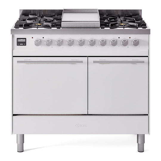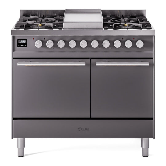 ILVE Professional Plus II 40" Dual Fuel Range with 6 Sealed Burners + Griddle Solid Door - UPD40FQMP