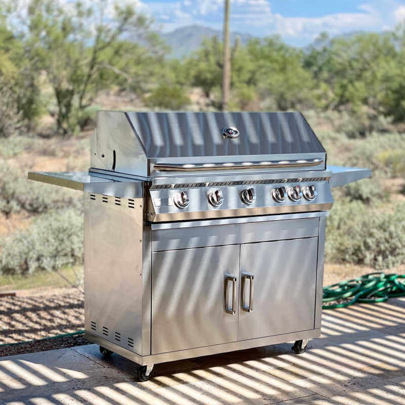 The Kokomo Grills 40-Inch 5-Burner Freestanding Gas Grill delivers professional-grade cooking power, premium construction, and versatility for any outdoor kitchen. Built from 304 stainless steel, this grill offers superior corrosion resistance and structural durability for long-term outdoor use.