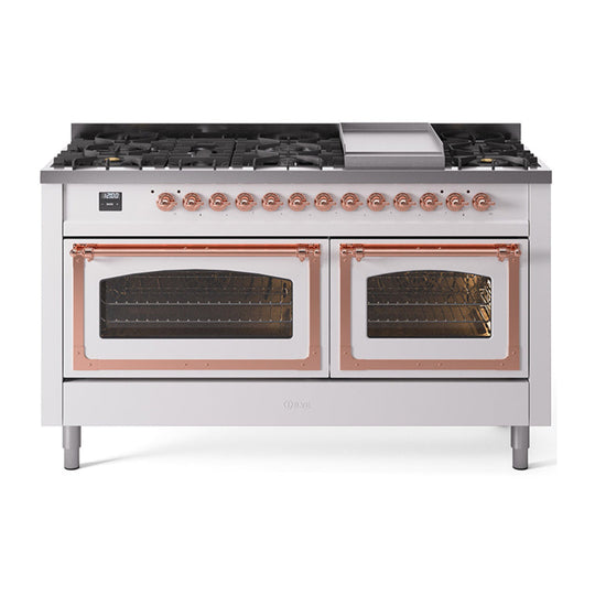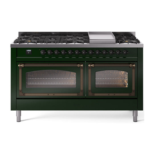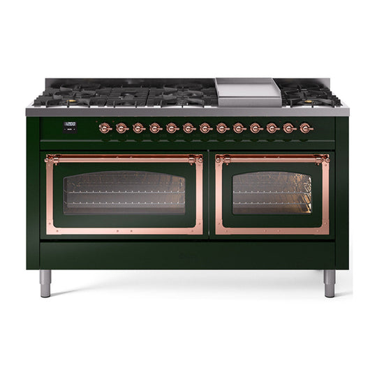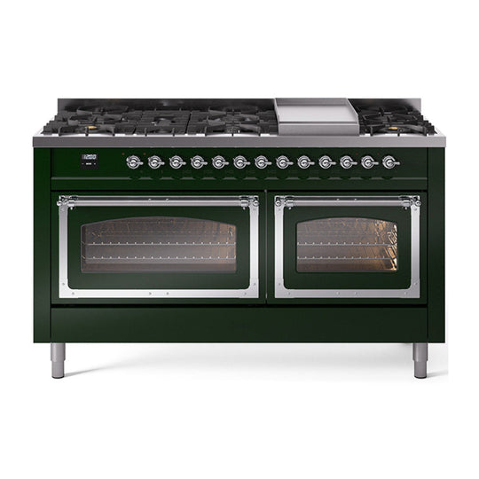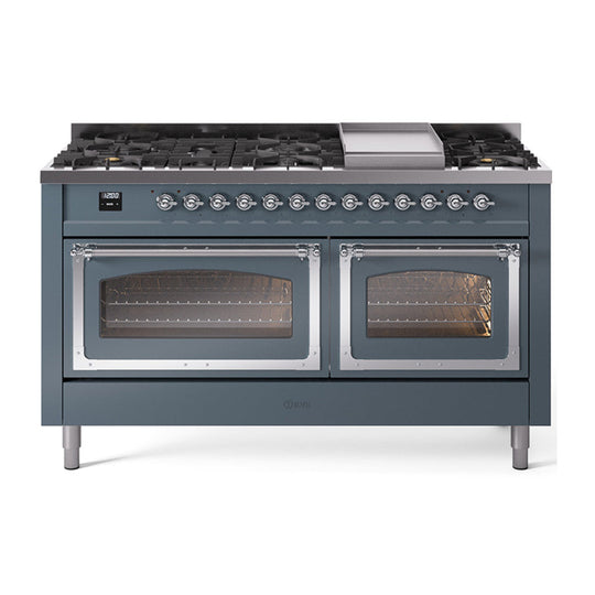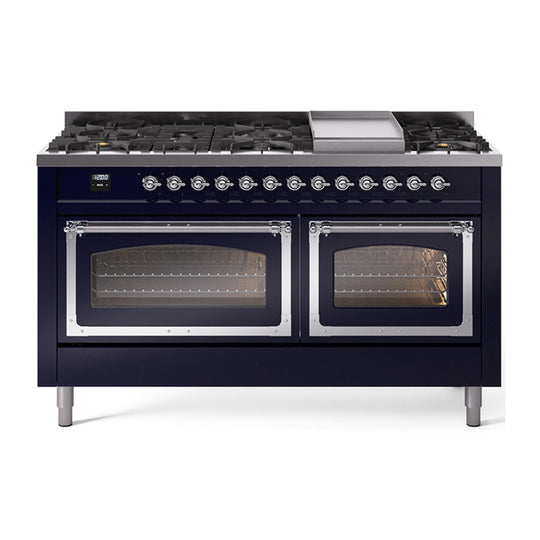 ILVE Nostalgie II Noblesse 60″ Dual Fuel Freestanding Range 9 Sealed Burners + Griddle with Solid Door - UN60FQNMP