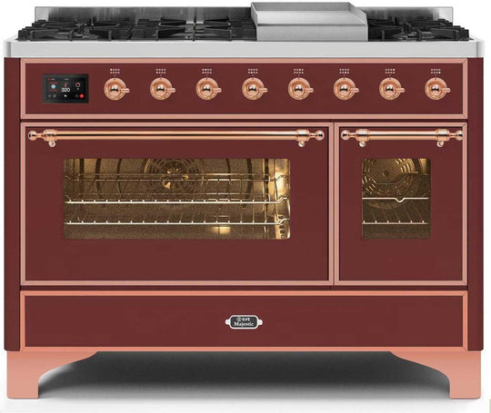 ILVE Nostalgie II Noblesse 48" Dual Fuel Freestanding Range 5 Sealed Burners + Griddle + French Top with Triple Glass Door - UN48FSNMP