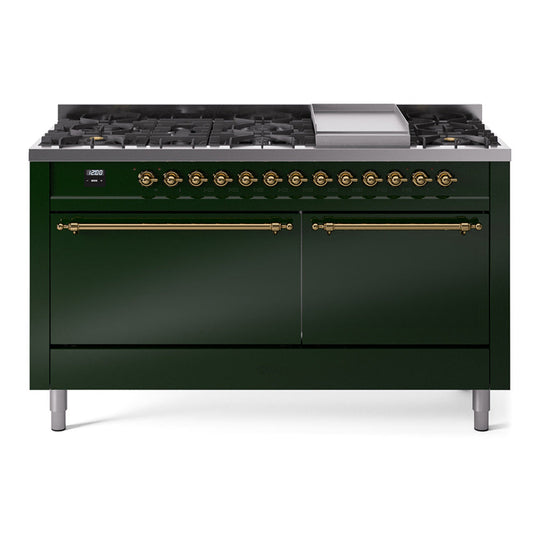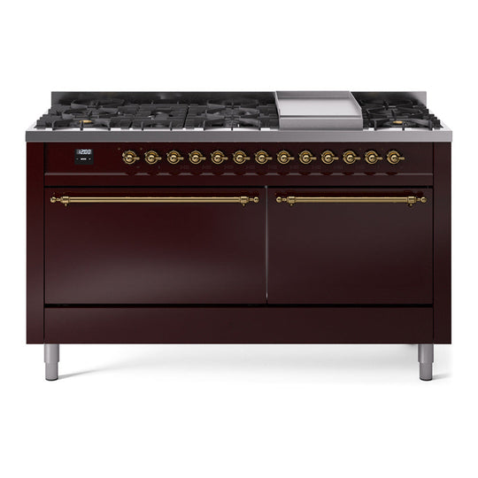 ILVE Nostalgie II 60" Dual Fuel Range with 9 Sealed Burners + Griddle Solid Door - UP60FQNMP