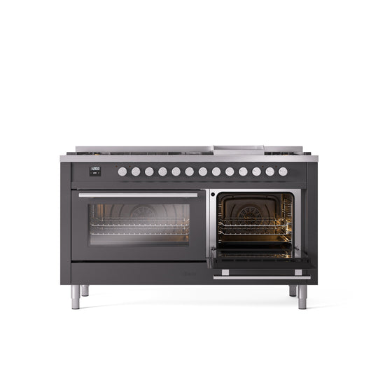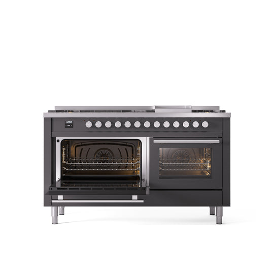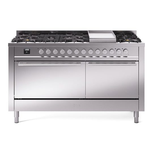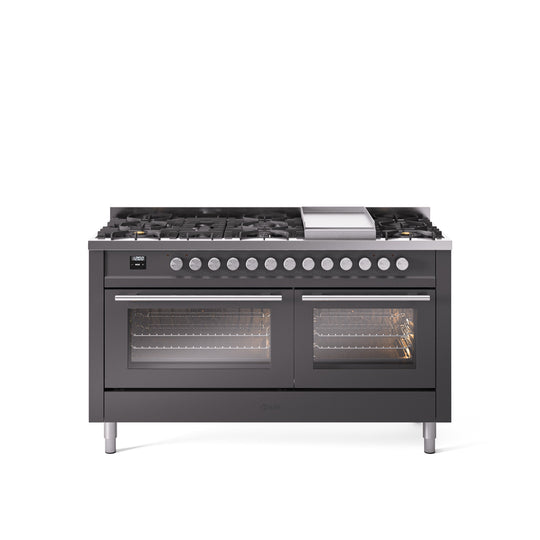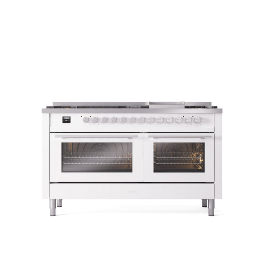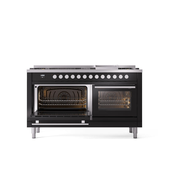 ILVE Professional Plus 60" Dual Fuel Range with 9 Sealed Burners w/Griddle Triple Glass Door - UP60FWMP