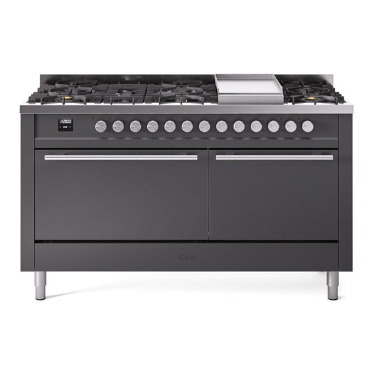 ILVE Professional Plus II 60" Dual Fuel Range with 9 Sealed Burners + Griddle Solid Door - UP60FQMP
