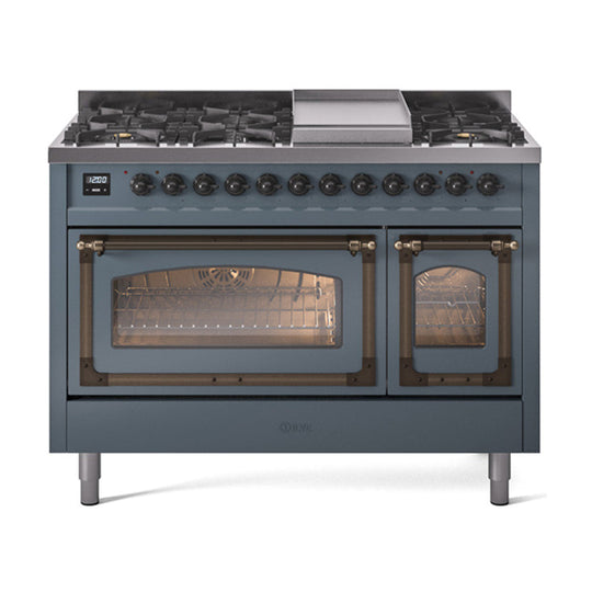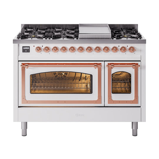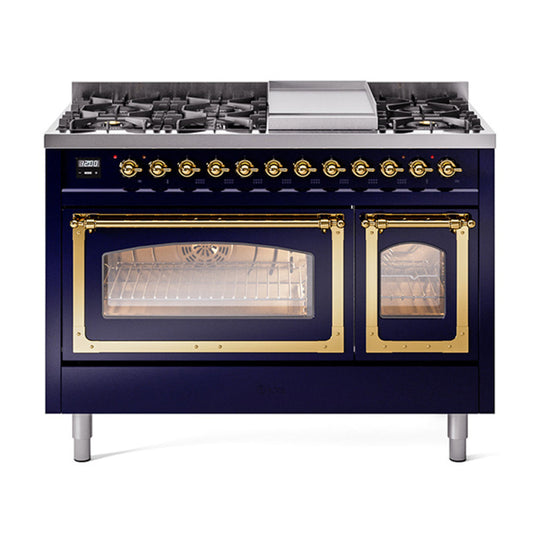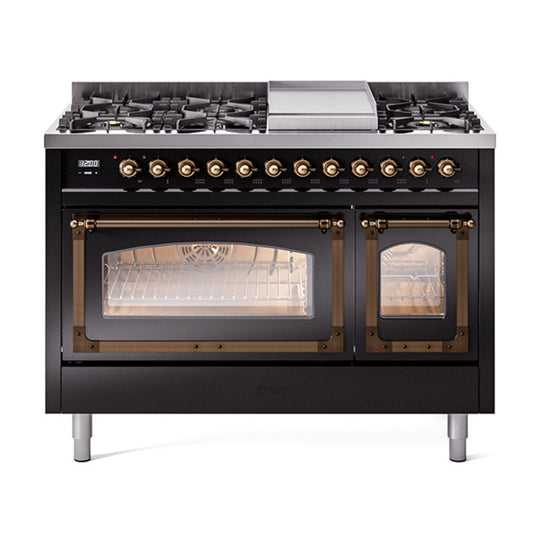 ILVE Nostalgie II Noblesse 48" Dual Fuel Freestanding Range 8 Sealed Burners + Griddle with Triple Glass Door - UN48FNMP