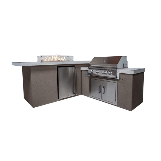KoKoMo Grills Baja 7'6"x9' BBQ Island With LEDs, Built-In BBQ And Refrigerator
