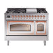 ILVE Nostalgie II Noblesse 48" Dual Fuel Freestanding Range 8 Sealed Burners + Griddle with Triple Glass Door - UN48FNMP