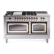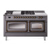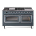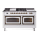 ILVE Nostalgie II Noblesse 60" Dual Fuel Range with 7 Sealed Burners + Griddle + French Top with Triple Glass Door - UN60FSNMP