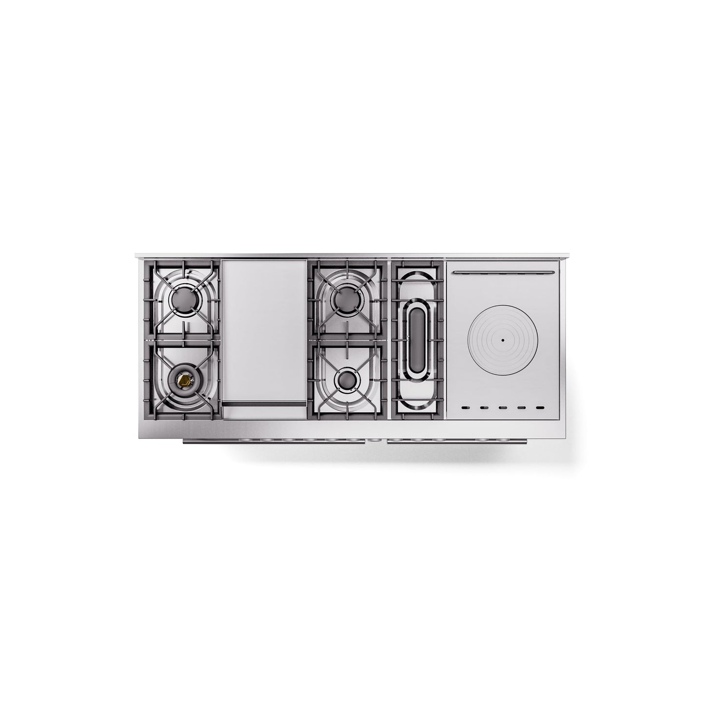 • Multiple Cooktop ConfigurationsChoose from a 9-burner setup with a fry top or a cooktop with a coupe de feu, oval burner, and fry top.