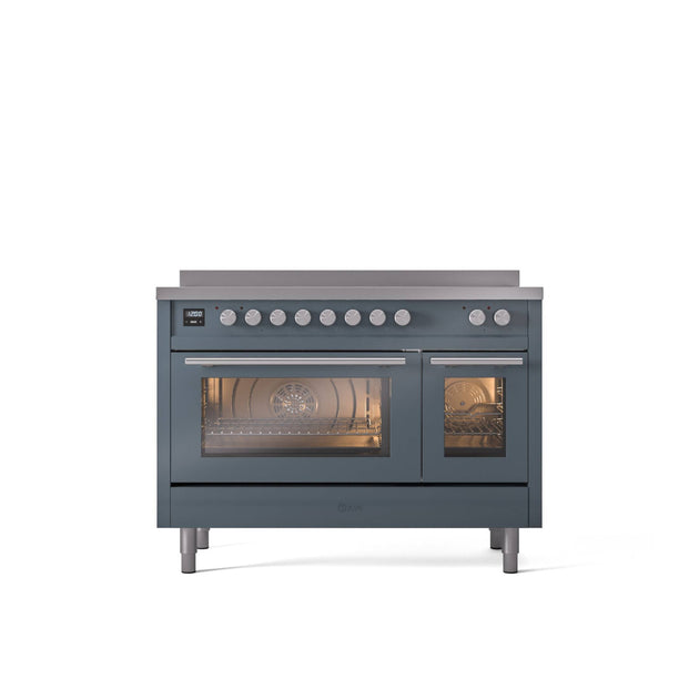 ILVE Professional Plus II 48" Electric Range with 6 Induction Elements Solid Door with Stainless Steel knobs - UPI486QMP